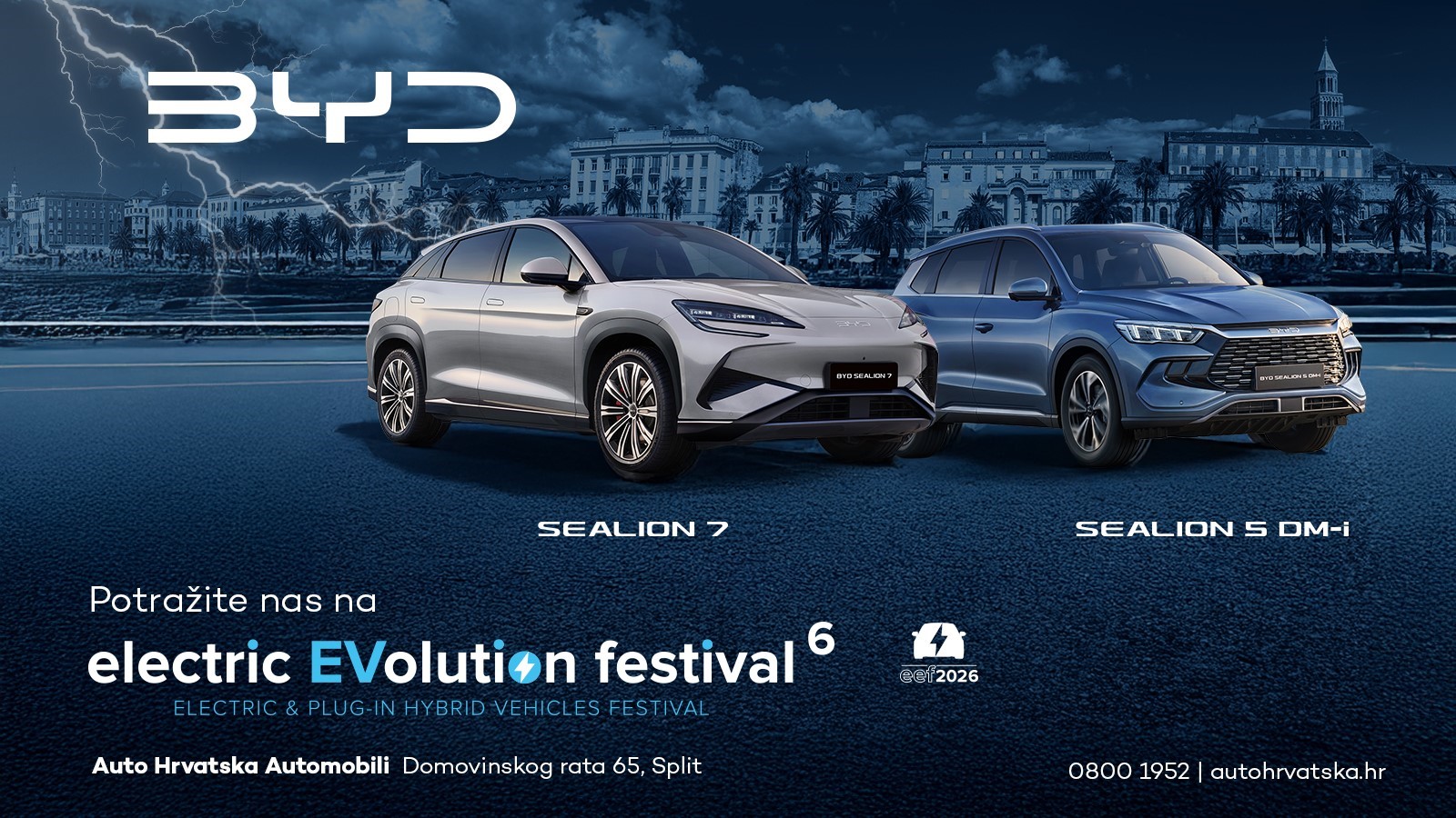 Electric Evolution Festival održava se od 13. do 15. ožujka u City Centru One Split, gdje će posjetitelji imati priliku upoznati najnovija BYD vozila i tehnologije elektrificirane mobilnosti.