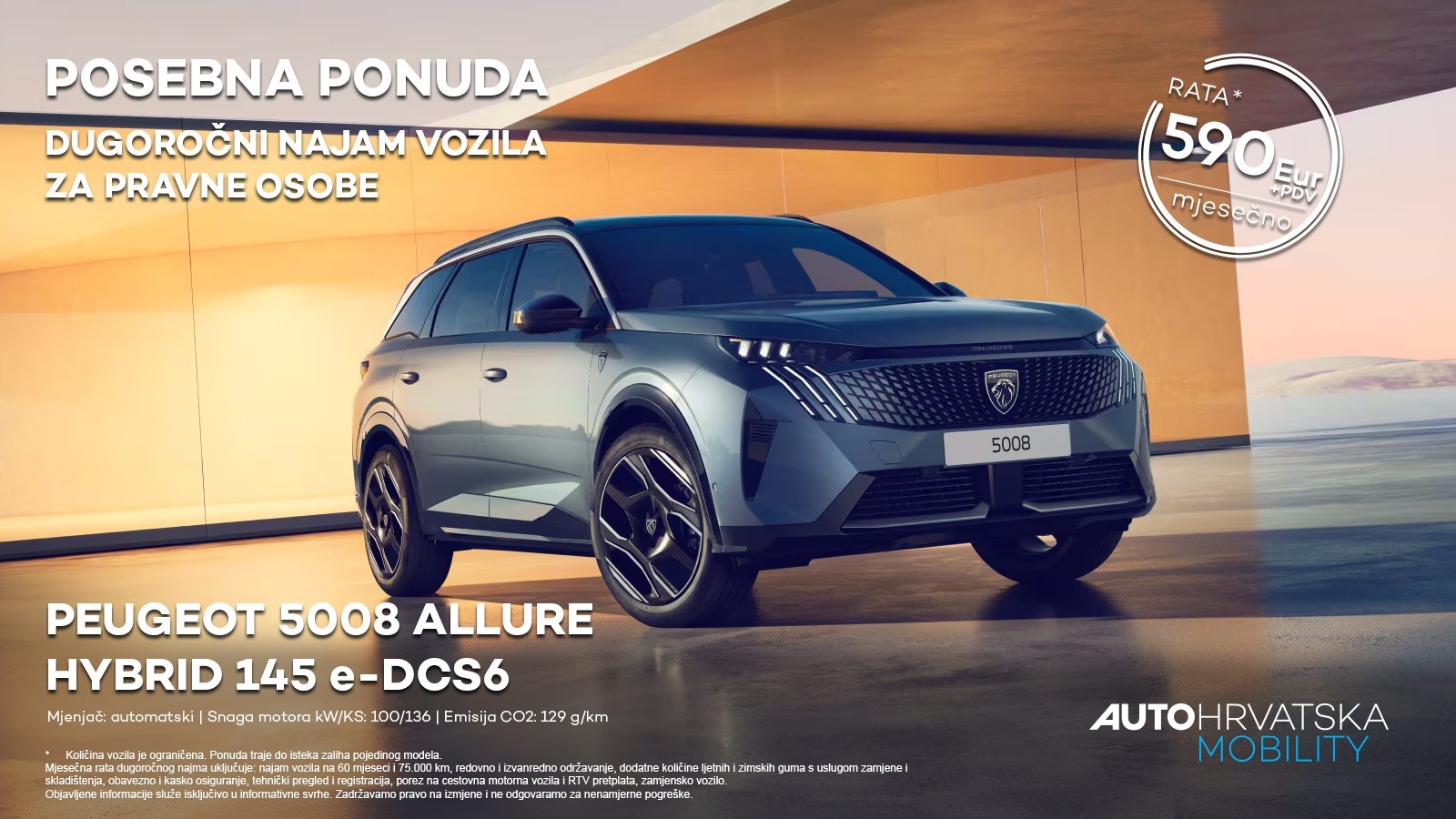 ▶️Peugeot 5008 Allure Hybrid dostupan je za dugoročni najam vozila po mjesečnoj rati od 590 €+pdv.