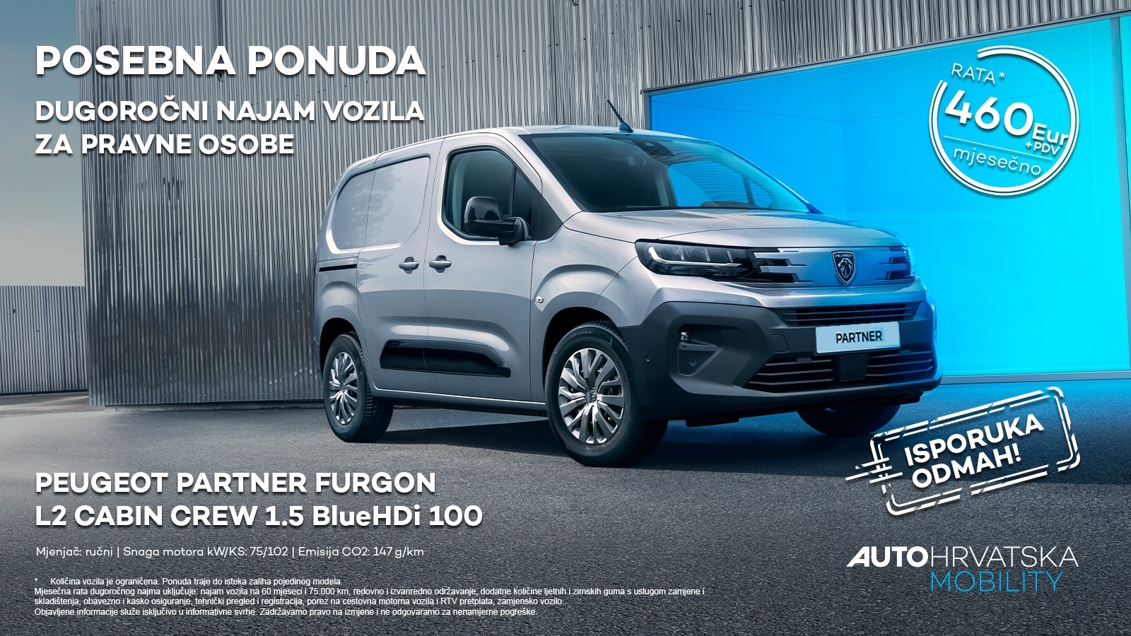 ▶️Peugeot Partner Furgon dostupan je za dugoročni najam vozila po mjesečnoj rati od 460 €+pdv.