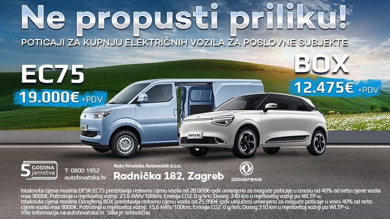 Istaknuta cijena modela DFSK EC75 od 19.000eur+pdv predstavlja redovnu cijenu vozila od 28.000€+pdv umanjeno za moguće poticaje u iznosu od 40% od neto cijene vozila max 9000€.